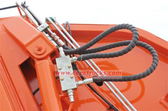 â–ºမူပိုင်ခွင့်ရှိသော ဖိသိပ်မှုယန္တရား- bidirectional compression နည်းပညာသည် 6:1 compression အချိုးကိုရရှိပြီး သေတ္တာတစ်လုံး၏ အမှန်တကယ်လုပ်ဆောင်နိုင်မှုစွမ်းရည်သည် 18m³ အမှိုက်ဖြည်ခြင်းသို့ရောက်ရှိသည်
