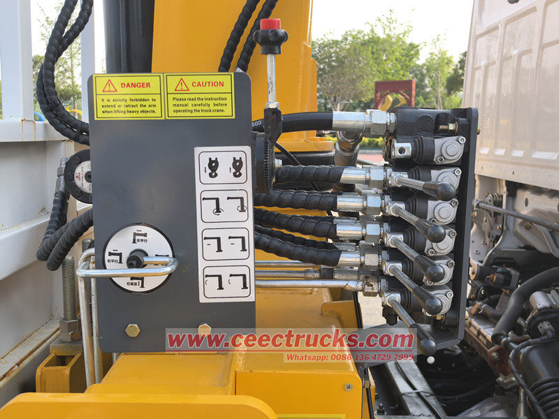 Isuzu လော်ရီ တပ်ဆင်ထားသော ကရိန်းသည် အတက်အဆင်းလုပ်ရန် ယန္တရားနှင့် အားကောင်းသည့် ဝါယာကြိုးကြိုးကို အသုံးပြု၍ ထွက်ခွာပြီး ကုန်တင်ချရာတွင် ထိလွယ်ရှလွယ် လည်ပတ်တုံ့ပြန်မှုရှိပြီး ဒေါင်လိုက် အတက်အဆင်းနှင့် ဆင်းသက်မှုကို တိကျစွာ ထိန်းချုပ်နိုင်သည်။ မတူညီသော လုပ်ငန်းခွင်အခြေအနေများနှင့် လိုက်လျောညီထွေဖြစ်စေမည့် လက်မောင်းအရှည်ပြောင်းလဲမှုနှင့်အတူ အမြင့်ဆုံးသော အလေးချိန်ကို ဒိုင်းနမစ်ဖြင့် ချိန်ညှိနိုင်သည်။