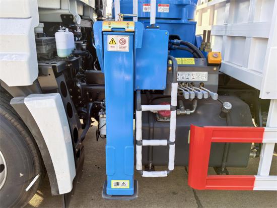 The crane weight is 287 0kg and the installation space is 19 50mm. The control panel can be selected in English or other languages to facilitate users with different needs. Isuzu FTR cargo truck mounted 10tons crane also provides a variety of optional configurations, such as knuckle boom cranes, hydraulic dump boxes, box thickness and height customized according to needs, and optional remote control boxes.