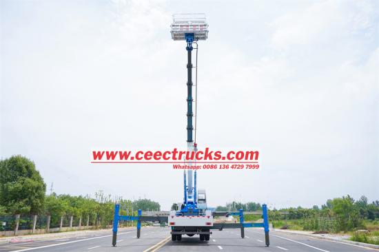 Remote control, easy to operateISUZU FTR 45m ဝေဟင်ပစ်ပလပ်ဖောင်းသည် အလွန်ကောင်းမွန်သော နည်းပညာပိုင်းဆိုင်ရာ စွမ်းဆောင်ရည်နှင့် ဘေးကင်းရေး ဒီဇိုင်းကို ပေါင်းစပ်ထားသည့် ပရော်ဖက်ရှင်နယ် အင်ဂျင်နီယာ အထူးထရပ်ကား ဖြစ်ပါသည်။ ISUZU New GIGA FTR ကိုယ်ထည်ကိုအခြေခံ၍ ထရပ်ကားသည် မြင်းကောင်ရေ 205 ကောင်အားနှင့် အမြင့်ဆုံးထွက်ရှိနိုင်သော 4HK1-TC60 အင်ဂျင်ကို တပ်ဆင်ထားပြီး စုစုပေါင်းယာဉ်ထုထည်မှာ 18,000 ကီလိုဂရမ်ဖြစ်သည်။ Isuzu FTR ဝေဟင်ပလပ်ဖောင်းထရပ်ကားသည် အမြင့်ဆုံးလုပ်ငန်းခွင်အမြင့် 45 မီတာ၊ မြေပြင်အထက် 27 မီတာမြင့်သော ပလပ်ဖောင်းအမြင့် 7 မီတာ နှင့် တည်ငြိမ်မှုကိုသေချာစေရန် ဟိုက်ဒရောလစ်စတိတ်ချိန်ခွင်လျှာစနစ်ပါရှိသည်။