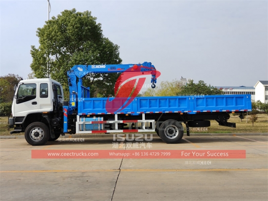 ISUZU FVR 5tons ကရိန်းထရပ်ကား၊ ISUZU FVR 4x4 ဘယ်ဘက်လက်မောင်းကိုယ်ထည်၊ MLD 6-shift manual ဂီယာအုံ၊ ISUZU 240HP ဒီဇယ်အင်ဂျင်၊ တရုတ်နာမည်ကြီးအမှတ်တံဆိပ် XCMG 5 တန် telescopic boom ကရိန်း၊ လိုအပ်သလို ကုန်တင်ကိုယ်ထည်အရွယ်အစား၊ ပန်းချီနှင့် လိုဂိုများသည် လိုအပ်ချက်အပေါ် မူတည်ပါသည်။