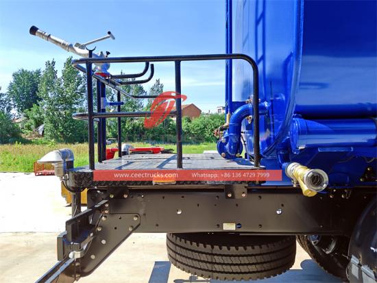 Isuzu GIGA 30000L ရေတင်သင်္ဘောတွင် အလွန်ကောင်းမွန်သော ရေဖြန်းခြင်းစွမ်းဆောင်ရည်၊ Suction ≥ 12m၊ Sprinkler width ≥ 18m၊ water cannon Range ≥ 38m။ Isuzu GIGA ရေတင်သင်္ဘောတွင် ရှေ့ရေဖြန်း Nozzles၊ နောက်ရေဖြန်း Nozzles နှင့် Water Spray Monitor တို့ကိုလည်း တပ်ဆင်ထားပြီး ဘက်စုံနှင့် ဘက်စုံရေဖြန်းခြင်းလုပ်ငန်းများကို သိရှိနိုင်မည်ဖြစ်သည်။ ထို့အပြင်၊ အနောက်ဘက်တွင် အလုပ်လုပ်သည့် ပလပ်ဖောင်းတစ်ခုရှိပြီး ဖိအားမြင့်ရေဖြန်းသေနတ်ကို တပ်ဆင်ထားသည်။ မှုတ်သေနတ်၏ပုံသဏ္ဍာန်သည် မတူညီသောလုပ်ဆောင်မှုအခြေအနေများကိုဖြည့်ဆည်းရန် ပြင်းထန်သောမိုးရွာခြင်း၊ တော်ရုံတန်ရုံမိုးရွာခြင်း၊ မိုးဖွဲဖွဲရွာခြင်းကဲ့သို့သော လက်တွေ့လိုအပ်ချက်များနှင့်အညီ ချိန်ညှိနိုင်ပါသည်။