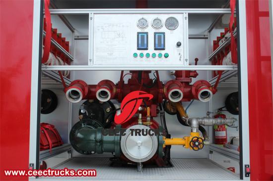 Isuzu GIGA 8x4 Dry Powder Water/Foam Fire Truck တွင် ယာဉ်မီးငြှိမ်းသတ်နိုင်မှု၏ အဓိကအချက်ဖြစ်သည့် အားကောင်းသော CB10/100 မီးသတ်ပန့်တစ်ခု တပ်ဆင်ထားပါသည်။ ပန့်သည် မြင့်မားသောဖိအားဖြင့် ရေ သို့မဟုတ် အမြှုပ်အမြောက်အမြားကို ပေးဆောင်ရန် ဒီဇိုင်းထုတ်ထားပြီး မီးသတ်သမားများသည် မီးငြှိမ်းသတ်ရာတွင် လိုအပ်သည့် အရင်းအမြစ်များရှိကြောင်း သေချာစေသည်။