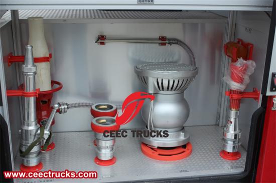 Isuzu GIGA 8x4 ဃry powder water foam fအူကြောင်ကြောင် truck သည် ၎င်း၏ တိုက်ခိုက်ရေးစွမ်းရည်ကို မြှင့်တင်ပေးသည့် အဆင့်မီမီးငြှိမ်းသတ်သည့် ကိရိယာများစွာ တပ်ဆင်ထားသည်။ မီးသတ်ဆေးဘူးများ၊ ရေစုဆောင်းသူများ၊ ရေစစ်များ၊ ရေဖြန့်ဖြူးသူများ၊ မီးသတ်ပိုက်များ၊ ရေသေနတ်များ၊ ရေမြှုပ်သေနတ်များ၊ မီးပုဆိန်များ၊ အဆိုပါကိရိယာများကို ကုန်တင်ကားကိုယ်ထည်အတွင်း စနစ်တကျထားရှိကာ သိမ်းဆည်းထားပြီး မီးသတ်သမားများသည် လိုအပ်သည့်အခါတွင် ၎င်းတို့ကို လျင်မြန်စွာဝင်ရောက်နိုင်စေကြောင်း အာမခံပါသည်။