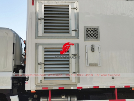 ISUZU 20T ရေခဲသေတ္တာဗင်ထရပ်၊ ISUZU GIGA ဘယ်ဘက်လက်မောင်း အကြီးစားမော်ဒယ် 6×4 ကိုယ်ထည်၊ FAST 9-shift manual ဂီယာအုံ၊ ISUZU 6HK1-TCH 300 HP အင်ဂျင်။ မြင့်မားသောစွမ်းဆောင်ရည်အတွက် America Carrier အအေးယူနစ်များဖြင့် တပ်ဆင်ထားပြီး ဗန်စွမ်းရည်အတွက် 5-25T စိတ်ကြိုက်ရွေးချယ်နိုင်ပါသည်။