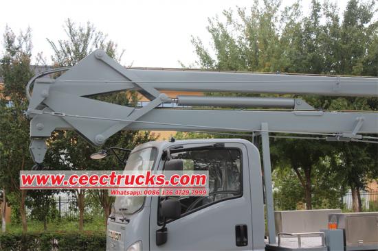 3 section folding arm with 14m working heightIsuzu KV100 14M Articulated Boom Aerial Work Truckထိရောက်မှု၊ လိုက်လျောညီထွေရှိပြီး ဘေးကင်းသော လည်ပတ်မှုလိုအပ်ချက်များအတွက် ဒီဇိုင်းထုတ်ထားသော စွမ်းဆောင်ရည်မြင့် ဝေဟင်လုပ်ငန်းသုံးကိရိယာတစ်ခုဖြစ်သည်။ ၎င်း၏ အဓိက ပါဝါသည် မြင်းကောင်ရေ 132 ကောင်အား အမြင့်ဆုံး စွမ်းအားဖြင့် Isuzu 4KH1CN6HB အင်ဂျင်မှ ဆင်းသက်လာပြီး ရှုပ်ထွေးသော လုပ်ငန်းခွင် အခြေအနေ အမျိုးမျိုးကို အလွယ်တကူ ကိုင်တွယ်ရန် အားကောင်းသည့် စွမ်းအားကို ပေးစွမ်းသည်။ Isuzu MLD 6-speed ဂီယာနှင့် လိုက်ဖက်ပြီး ချောမွေ့သော ရွှေ့ပြောင်းမှု၊ ရိုးရှင်းသော လုပ်ဆောင်ချက်နှင့် မြင့်မားသော ယုံကြည်စိတ်ချရမှုတို့ကို ပေးစွမ်းသည်။ ယာဉ်တွင် အမြင့်ဆုံး အလုပ်လုပ်နိုင်သော အမြင့် 14 မီတာ နှင့် ကြီးမားသော လုပ်ငန်းအကွာအဝေး ပါရှိသည့် အပိုင်းသုံးပိုင်း သပ်သပ်ရပ်ရပ်ရှိသော boom တည်ဆောက်ပုံ တပ်ဆင်ထားပြီး၊ ၎င်းသည် အတားအဆီးများကို လိုက်လျောညီထွေ ဖြတ်ကျော်နိုင်ပြီး များပြားလှသော ဝေဟင်လုပ်ငန်းခွင် အခြေအနေများနှင့် လိုက်လျောညီထွေဖြစ်အောင် ပြုလုပ်ထားသည်။
