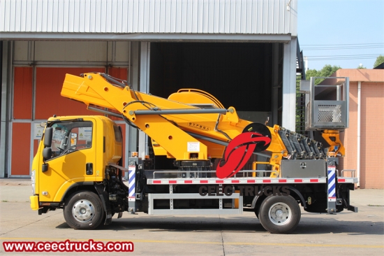 ISUZU 16m Telescopic Aerial Platform Truck အမျိုးအစား (ကိုလည်းခေါ်တယ်။ Isuzu အပေါ့စား KV100 ဝေဟင်ပလပ်ဖောင်းထရပ်ကား၊ Isuzu KV100 ပုံးထရပ်ကားISUZU ဝေဟင်လုပ်ငန်းခွင်သုံး ထရပ်ကား၊Isuzu KV100 တပ်ဆင်ထားသော ဓာတ်လှေကားထရပ်ကား၊ ISUZU mobile man lift vehicle ၊ Truck Mounted Aerial Platform ၊) အလုပ်သမားများအား မြင့်မားသောနေရာများသို့ ဘေးကင်းစွာ ဝင်ရောက်နိုင်စေမည့် ဟိုက်ဒရောလစ် သို့မဟုတ် စက်ပိုင်းဆိုင်ရာ lifting platform တပ်ဆင်ထားသည်။Isuzu KV100 အပေါ့စား ဝေဟင်လုပ်ငန်းသုံးယာဉ်အား စည်ပင်သာယာရေးအဖွဲ့ ဆောက်လုပ်ရေး၊ လျှပ်စစ်ဓာတ်အား ပြုပြင်ထိန်းသိမ်းမှု၊ ရှုခင်းခင်းကျင်းခြင်း၊ ကြော်ငြာတပ်ဆင်ခြင်းနှင့် အခြားနယ်ပယ်များတွင် ကျယ်ကျယ်ပြန့်ပြန့် အသုံးပြုနိုင်ပြီး ဝေဟင်လုပ်ငန်းအတွက် အဆင်ပြေ၊ ထိရောက်ပြီး ဘေးကင်းသော ဖြေရှင်းနည်းများကို ပံ့ပိုးပေးပါသည်။