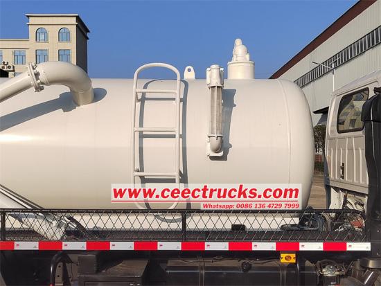 2. Large-capacity vacuum tank- ဒါကISUZU မိလ္လာစုပ်ထရပ်ကား4000L ဖုန်စုပ်ကန် တပ်ဆင်ထားပြီး မြို့ပြသန့်ရှင်းရေး လုပ်ငန်းအများစု၏ လိုအပ်ချက်များကို ဖြည့်ဆည်းပေးသည်။ ထို့အပြင် တိုင်ကီအား 6 မီလီမီတာ အထူ အရည်အသွေးမြင့် ကာဗွန်သံမဏိဖြင့် ပြုလုပ်ထားကာ အတွင်းပိုင်း ကန့်လန့်ကာများနှင့် သံချေးတက်ခြင်းကို ခံနိုင်ရည်ရှိသောကြောင့် ယာဉ်၏ကြာရှည်ခံမှုနှင့် ဘေးကင်းမှုကို အာမခံပါသည်။