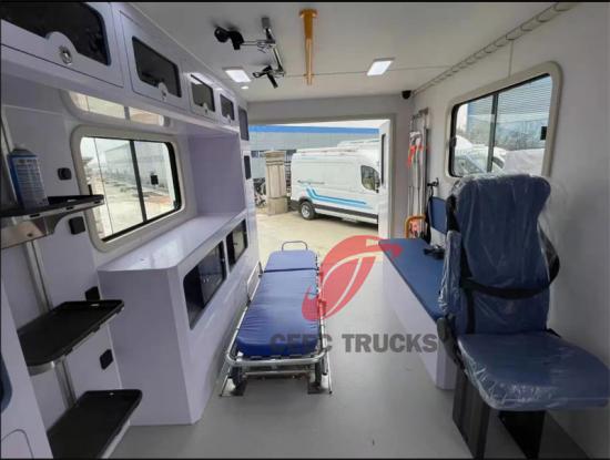၅။ ISUZU ကို အခြေခံထားသော်လည်း လိုက်လျောညီထွေရှိသော အတွင်းခန်းနေရာလွတ်နှင့် ဘက်စုံအသုံးပြုနိုင်သည်။ NPR 4x4 ကိုယ်ထည် ပြုပြင်မွမ်းမံခြင်း၊ ဤလူနာတင်ယာဉ်၏အတွင်းပိုင်းအာကာသဒီဇိုင်းသည် အလွန်လိုက်လျောညီထွေရှိပြီး ထိရောက်မှုရှိသည်။ ဆေးဘက်ဆိုင်ရာပစ္စည်းမျိုးစုံနှင့် ဆေးဝါးများထားရှိရန် ဆေးဘက်ဆိုင်ရာခန်းအတွင်း သော့ကာများနှင့် နံရံကပ်ဗီဒိုများစွာရှိသည်။ ခေါက်နိုင်သောပြုတ်ရည်ခုံ၊ ဘက်စုံသုံးထိုင်ခုံနှင့် အခြားဒီဇိုင်းများသည် အာကာသအသုံးချမှုကို ဂရုတစိုက်ထည့်သွင်းစဉ်းစားမှုကို ထင်ဟပ်စေသည်။ ဤပြောင်းလွယ်ပြင်လွယ်ရှိသော အတွင်းခန်းအပြင်အဆင်သည် သမားရိုးကျအရေးပေါ်ကုသမှု၏လိုအပ်ချက်များကို ဖြည့်ဆည်းပေးရုံသာမက အမျိုးမျိုးသော အထူးအခြေအနေများကို ကိုင်တွယ်နိုင်ခြေကိုလည်း ထောက်ပံ့ပေးသည်။ ကြီးမားသောမတော်တဆမှုများတွင်နေ့စဉ်ဆေးဘက်ဆိုင်ရာသယ်ယူပို့ဆောင်ရေး သို့မဟုတ် အရေးပေါ်ကုသခြင်းဖြစ်စေ ဤလူနာတင်ယာဉ်သည် လိုက်လျောညီထွေစွာတုံ့ပြန်နိုင်သည်။
