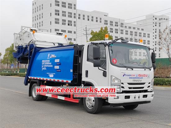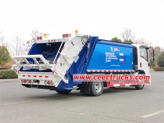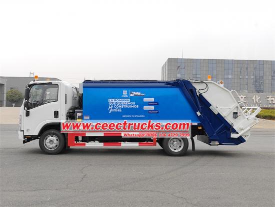 Isuzu 700P 8 ကုဗအမှိုက်ကြိတ်ခွဲထရပ်ကား၊ Isuzu 700P ကိုယ်ထည်၊ wheelbase 3815mm၊ Isuzu 4HK1-TCG61 အင်ဂျင်၊ 139Kw၊ Euro 6 emission၊ displacement 5193ml ကိုအခြေခံ၍ ပြင်ဆင်ထားသည်။ ကား၏ compression ပမာဏမှာ 8cbm ဖြစ်ပြီး ကာဗွန်သံမဏိဖြင့် ပြုလုပ်ထားသည်။ မော်တော်ယာဉ် အမှိုက်များ သယ်ဆောင်ခြင်းတွင် တက္ကစီအတွင်းရှိ လျှပ်စစ်ထိန်းချုပ်ဘောက်စ်၊ ယာဉ်မောင်းဘက်ခြမ်းရှိ manual hydraulic လည်ပတ်လီဗာ၊ အနောက်တံခါး၏ ဘယ်ဘက်ခြမ်းရှိ လျှပ်စစ်ထိန်းချုပ်ဘောက်စ်နှင့် tailgate ညာဘက်ခြမ်းရှိ manual operating lever တို့ ပါ၀င်ပါသည်။