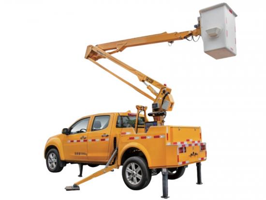 ဝေဟင်ပလပ်ဖောင်းပါရှိသော ဤ Isuzu 4x4 ပစ်ကပ်သည် အလွန်စွယ်စုံသုံးယာဉ်ဖြစ်သည်။ ၎င်းသည် လေးဘီးယက်စနစ်ဖြင့် တပ်ဆင်ထားပြီး မြင်းကောင်ရေ 143 ကောင်ရေအား အများဆုံး 2999cc 4KH1CT6H1 ဒီဇယ်အင်ဂျင်ကို တပ်ဆင်ထားသည်။ ဤပစ်ကပ်ထရပ်ကား၏ ထူးခြားချက်မှာ ဝေဟင်အလုပ်ပလပ်ဖောင်းတစ်ခု တပ်ဆင်ထားခြင်းဖြစ်သည်။ ပလပ်ဖောင်းသည် အများဆုံးအလုပ်လုပ်နိုင်သောအမြင့် 10 မီတာအထိ၊ အမြင့်ဆုံးအလုပ်လုပ်နိုင်သောအချင်းဝက် 5.9 မီတာနှင့် 200 ကီလိုဂရမ်အထိ ခံနိုင်ရည်ရှိသည်။ ပလက်ဖောင်းသည် ခေါက်ရိုးရိုးဒီဇိုင်းကို လက်ခံထားပြီး 360 လှည့်နိုင်သည်။ံ၎င်းတွင် ဉာဏ်ရည်ထက်မြက်သော အီလက်ထရွန်နစ်ထိန်းချုပ်မှုစနစ်နှင့် အရေးပေါ်ပန့်၊ တွဲလောင်းတောင်း၏ အရေးပေါ်ရပ်တန့်မှု၊ နှင့် အလိုအလျောက်ချိတ်ဆက်သည့်ကိရိယာကဲ့သို့သော ဘေးကင်းရေးကိရိယာများစွာ တပ်ဆင်ထားသည်။ ယာဉ်ကိုယ်ထည်တွင် ပါဝါစတီယာရင်စနစ် တပ်ဆင်ထားသည့် 5 ရှေ့ 1 နောက်ပြန်ဂီယာအုံကို အသုံးပြုထားပြီး 245/70R17LT တာယာများကို အသုံးပြုထားသည်။