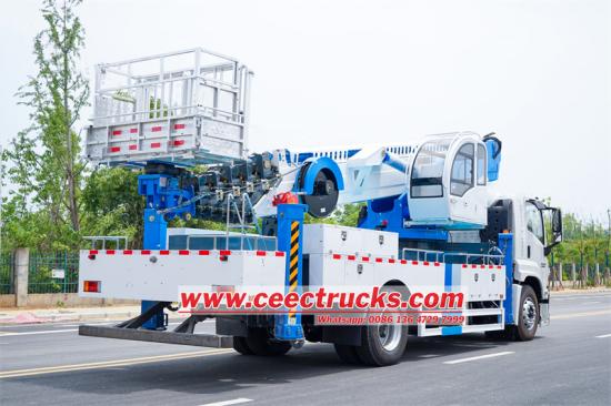 ISUZU Truck-Mounted 45m Aerial Work Platform သည် ISUZU ၏ အကြမ်းခံပြီး ယုံကြည်စိတ်ချရသော FTR GIGA 4X ကိုယ်ထည်ကို အခြေခံ၍ ဝေဟင်လုပ်ငန်းအမျိုးမျိုးအတွက် စွယ်စုံရ အစွမ်းထက်သောကိရိယာတစ်ခုဖြစ်သည်။ ခေတ်မီဆန်းသစ်သော ဤပလပ်ဖောင်းတွင် MLD 6-speed ဂီယာပါရှိသောကြောင့် စိန်ခေါ်မှုရှိသောမြေပြင်တွင်ပင် ချောမွေ့ပြီး ထိရောက်သောလည်ပတ်မှုကို သေချာစေသည်။