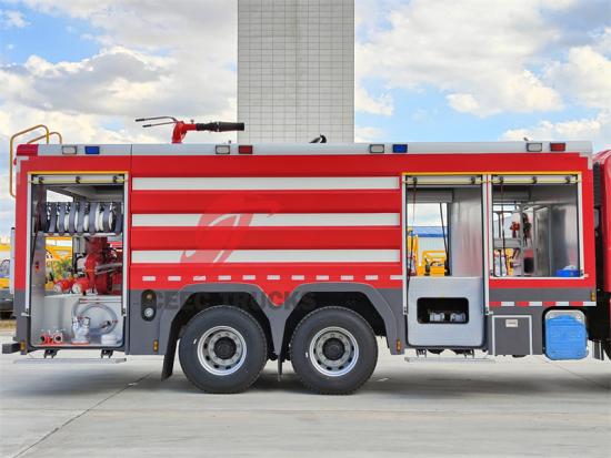 ကိုယ်ထည်အပိုင်းသည် တည်ငြိမ်မှုနှင့် ဆွဲငင်အားကောင်းသော 6x4 ဖွဲ့စည်းမှုပုံစံကို လက်ခံထားပြီး အမျိုးမျိုးသောမြေပြင်အနေအထားများကိုဖြတ်ကျော်ကာ အရေးပေါ်နေရာများသို့ရောက်ရှိရန်အတွက် မရှိမဖြစ်လိုအပ်သည်။ ၎င်း၏ခိုင်ခံ့သောကိုယ်ထည်သည် ပြင်းထန်သောအခြေအနေများတွင်ပင် ချောမွေ့စွာလည်ပတ်နိုင်ပြီး မီးသတ်သမားများသည် မီးလောင်ကျွမ်းသည့်နေရာသို့ လျင်မြန်စွာရောက်ရှိနိုင်ပြီး ထိန်းချုပ်မှုလုပ်ငန်းကို ချက်ချင်းစတင်နိုင်စေကြောင်း အာမခံပါသည်။ တစ်ချိန်တည်းမှာပင်၊ ၎င်းအား ရှေ့ဂီယာ ၁၂ ချက်နှင့် ပြောင်းပြန်ဂီယာ ၂ ချက်ပါရှိသော FAST12 မြန်နှုန်းဂီယာအုံနှင့် တွဲဖက်ထားပြီး ချောမွေ့သောပြောင်းရွေ့မှုခံစားမှုနှင့် ပိုမိုကောင်းမွန်သော ဂီယာထိရောက်မှုကို ပေးစွမ်းသည်။ တစ်ချိန်တည်းမှာပင်၊ ယာဉ်တွင် မောင်းနှင်မှုဘေးကင်းမှုကို ပိုမိုတိုးတက်ကောင်းမွန်စေသည့် ABS anti-lock ဘရိတ်စနစ်ကိုလည်း တပ်ဆင်ထားသည်။