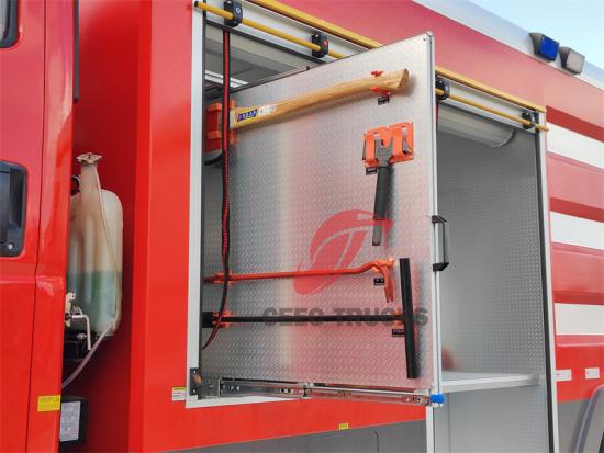 1. Foam အရည်ပြင်ဆင်မှု- ယာဉ်ပေါ်တွင် တပ်ဆင်ထားသော 2 ကုဗမီတာ အမြှုပ်ခံကန်သည် အထူးအမြှုပ်ထွက်သည့် မီးသတ်ဆေးဘူးများကို သိမ်းဆည်းထားသည်။ ဤရေမြှုပ်မီးသတ်ဆေးများသည် ကောင်းမွန်သောဖုံးလွှမ်းမှုနှင့် အပူလျှပ်ကာများပါရှိပြီး မီးကို လျင်မြန်စွာငြှိမ်းသတ်နိုင်သည်။