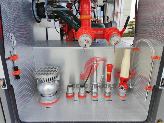 2. ရေတိုင်ကီမှ ရေပေးဝေခြင်း- ယာဉ်ပေါ်တွင် တပ်ဆင်ထားသော ၁၀ ကုဗမီတာ ရေကန်သည် မီးသတ်စနစ်အတွက် ရေလုံလောက်စွာ ထောက်ပံ့ပေးသည်။ မီးသတ်ပန့်သည် ပိုက်လိုင်းမှတဆင့် ရေကန်မှရေကို ဆွဲယူပြီး မီးသတ်မော်နီတာ သို့မဟုတ် အမြှုပ်မီးငြိမ်းသတ်သေနတ်ထံ ဖိအားပေးသည်။
