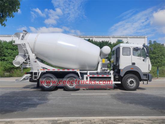 Beiben 6x4 10 ကုဗမီတာကွန်ကရစ်ရောနှောထရပ်ကားသည် Beiben NG80B 2634 6x4 ကိုယ်ထည်၊ 3800+1450mm wheelbase၊ Weichai WP10.340E32 အင်ဂျင်နှင့် Fast 9-speed gearbox တပ်ဆင်ထားပါသည်။ အပေါ်ပိုင်းရောစပ်ကန်သည် 10 ကုဗမီတာစွမ်းရည်ရှိပြီး Q355 မန်းဂနိစ်သံမဏိဖြင့်ပြုလုပ်ထားသည်။ တင့်ကားကိုယ်ထည်သည် 5 မီလီမီတာ၊ ဦးခေါင်းသည် 6 မီလီမီတာ၊ ဓါးသွားများသည် 4 မီလီမီတာအထူဖြစ်သည်။ ၎င်းတွင် အီတလီ Bonfiglioli 577L အလျှော့ပေးသည့်စက်၊ အမေရိကန် Eaton အမှတ်တံဆိပ် 6423-279 ဟိုက်ဒရောလစ်ပန့်နှင့် 6433-042 မော်တာ၊ တရုတ် Kaipeng KT-YS-18L ရေတိုင်ကီ၊ လေထိန်းချုပ်မှုသေတ္တာ တပ်ဆင်မှု၊ ရေစည်ပမာဏ 400L၊ လေဖိအားရေပေးဝေမှု၊ လေဖိအားပေးဝေမှု၊ နှစ်ဘက်ခြမ်းထိန်းချုပ်မှုလက်ကိုင်များ၊ နောက်ဘက်တွင် ချိတ်ဆက်မှုနှုန်း နည်းပါးသည်။