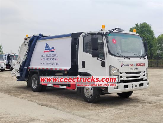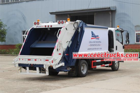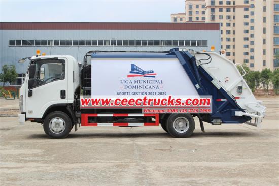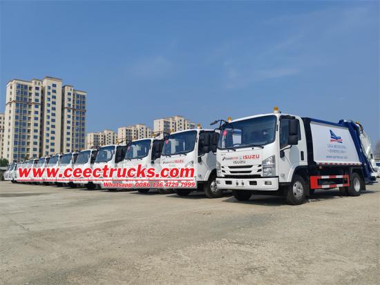Isuzu 10 cbm rear loader compactor ထရပ်ကားအား Isuzu ELF 700P cab၊ USB၊ A/C၊ ပါဝါစတီယာရင်၊ လျှပ်စစ်ပြတင်းပေါက်များ၊ 4175mm wheelbase၊ GVW 11000kg၊ ယာဉ်တွင် 4HK1-TCG61 Isu 190HP Eurouzu ဂီယာပုံး၊ ဒီဇယ်အင်ဂျင်၊ အပေါ်ပိုင်းသည် 10 cbm အမှိုက်ပုံး၊ arc ဒီဇိုင်း၊ နှစ်ဖက် 4mm နှင့် အောက်ခြေ 5mm အထူ၊ သံချေးတက်ခြင်း ကုသမှု၊ လည်ပတ်ချိန် 25-30 စက္ကန့်၊ ဟိုက်ဒရောလစ်စနစ် ဖိအား 16MPa၊ အလိုအလျောက်နှင့် လက်စွဲထိန်းချုပ်မှုကို ပံ့ပိုးပေးသည်၊ 240L အမှိုက်ပုံးသို့ လိုက်လျောညီထွေဖြစ်အောင်၊ ထိရောက်ပြီး ပတ်ဝန်းကျင်နှင့် လိုက်လျောညီထွေဖြစ်စေသည်။