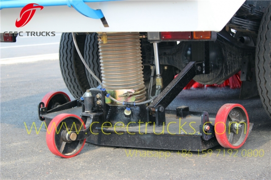 ၂။DFAC 6CBM Street Sweeper ထရပ်ကားအလယ်တွင် Sweeper Brush 4 ခုနှင့် Rear Suction Nozzle ရှိသည်။