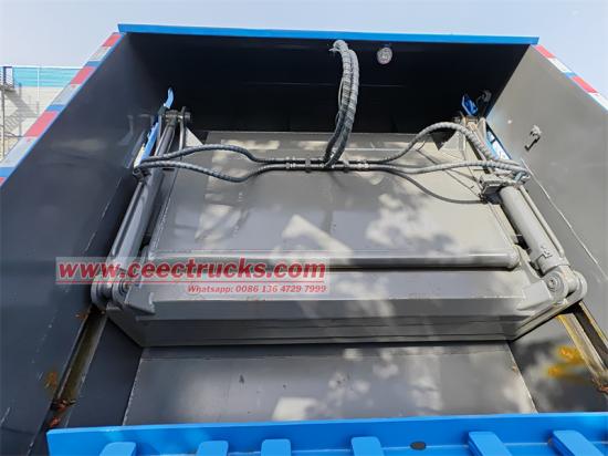တပ်ဆင်ထားသည့် 200L polyethylene မိလ္လာကန်သည် ဖိသိပ်နေစဉ်အတွင်း အမှိုက်များကို စုဆောင်းပေးကာ နောက်တံခါးတွင် ဖြတ်သန်းနေစဉ်အတွင်း ဒုတိယညစ်ညမ်းမှုကို ကာကွယ်ရန် ဆီလီကွန်တံဆိပ်များနှင့် ဟိုက်ဒရောလစ်လက်ချိတ်များပါရှိသည်။ ကန့်သတ်ထားသောနေရာများတွင် လုပ်ဆောင်ရန်အတွက် ခေါက်နိုင်သော နောက်အဆင့်ကို ကိုယ်တိုင်ပြန်ရုတ်သိမ်းနိုင်သည်။